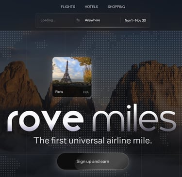 Rove te da millas por registrarte, por referir y por reservar viajes (hoteles, coches, etc.).